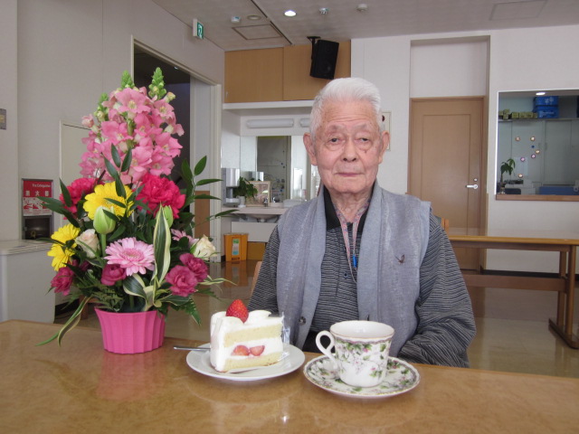 2月生まれの誕生日会を行いました。お元気な96歳の方もいらっしゃりおめでたい誕生日でした。ショートケーキとコーヒー・紅茶を召し上がり、皆様大変喜んで頂きました。