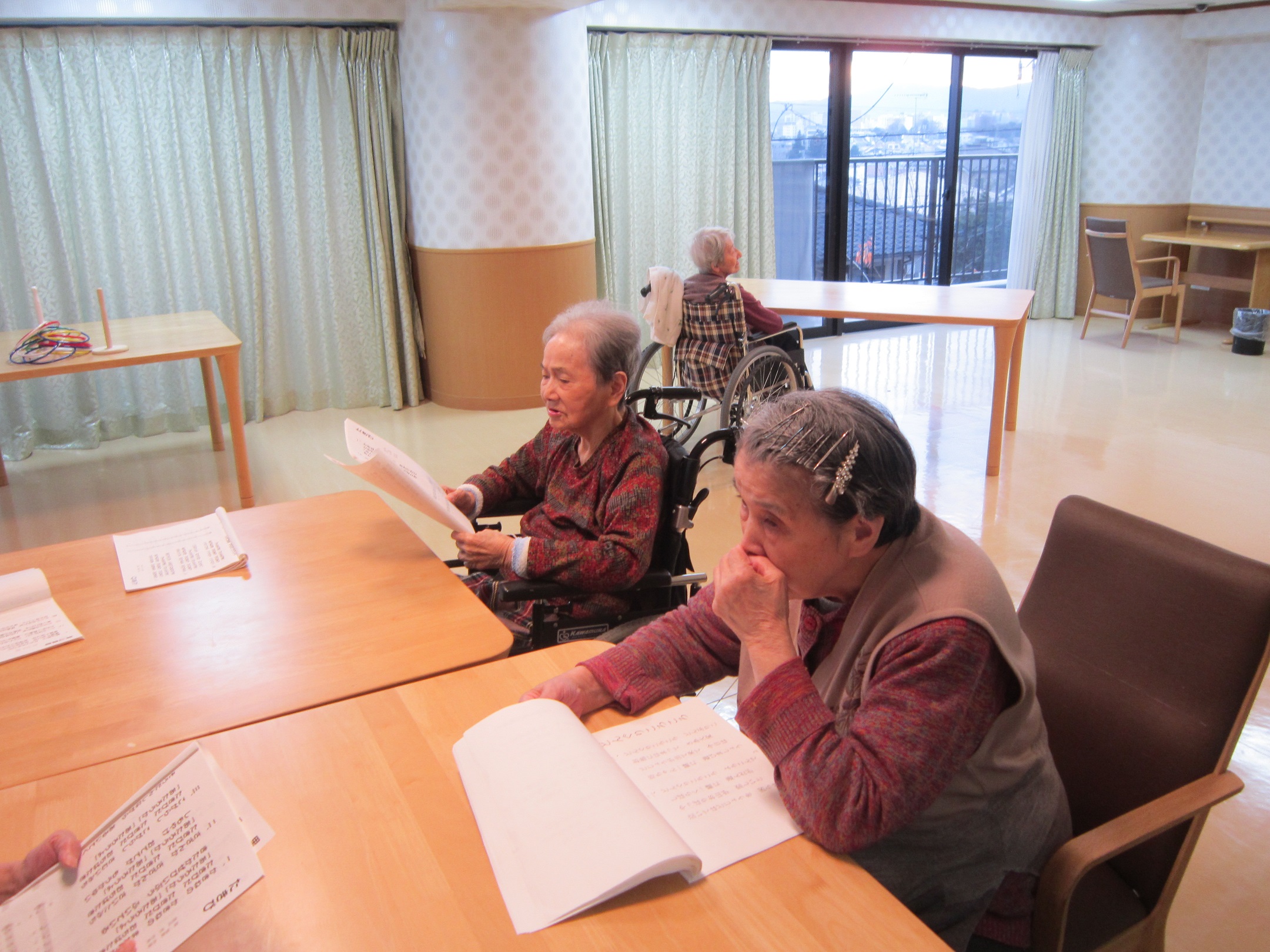 1月は、かるた・塗り絵・体操・折り紙・風船バレー・合唱などなど・・・
