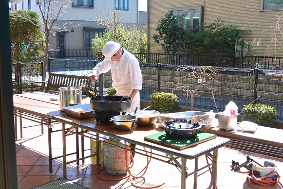 テラスで揚げ、揚げたてを皆様に召し上がって頂きました♪