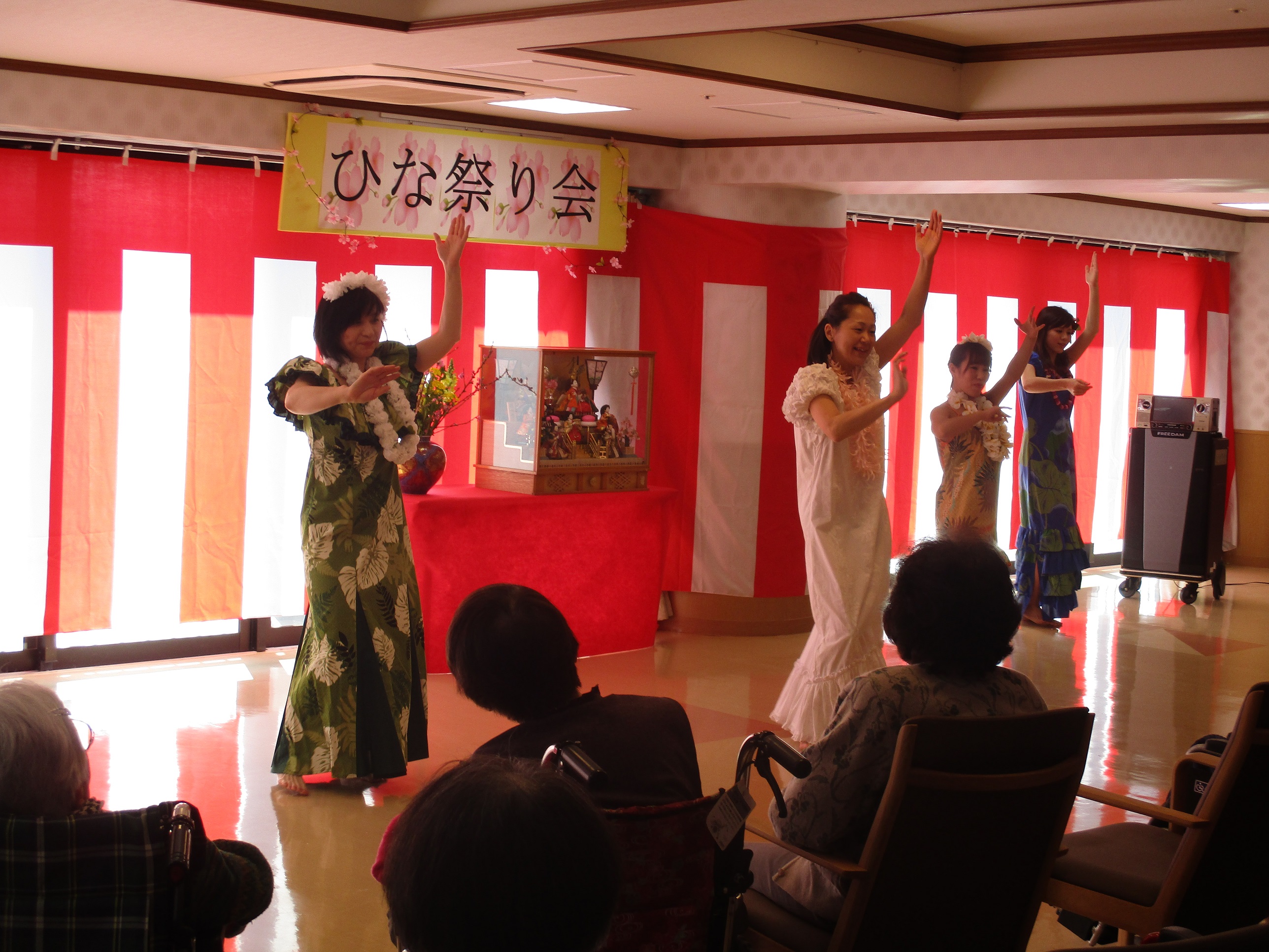 フラダンスは、介護課田口係長の下、ゆったりとした曲に乗せてダンス(*^_^*)