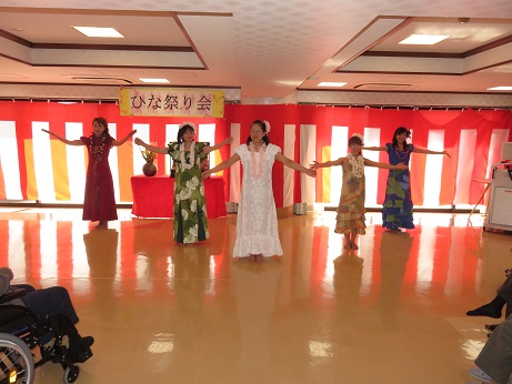 ひな祭り会は、女性主役ですので、女性職員によるフラダンスを披露。