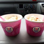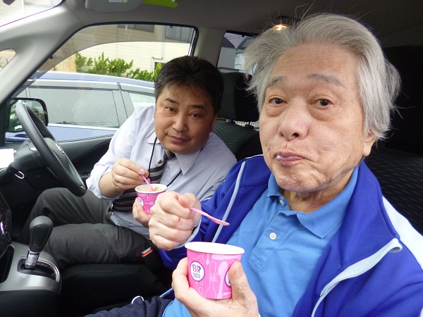 小雨が降っていた為、車の中で召し上がって頂く事になりましたが、久しぶりのアイスに