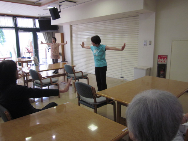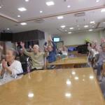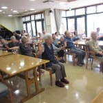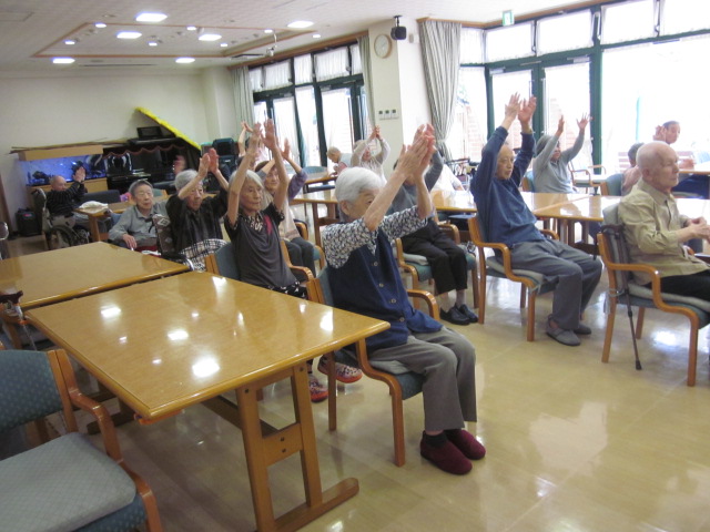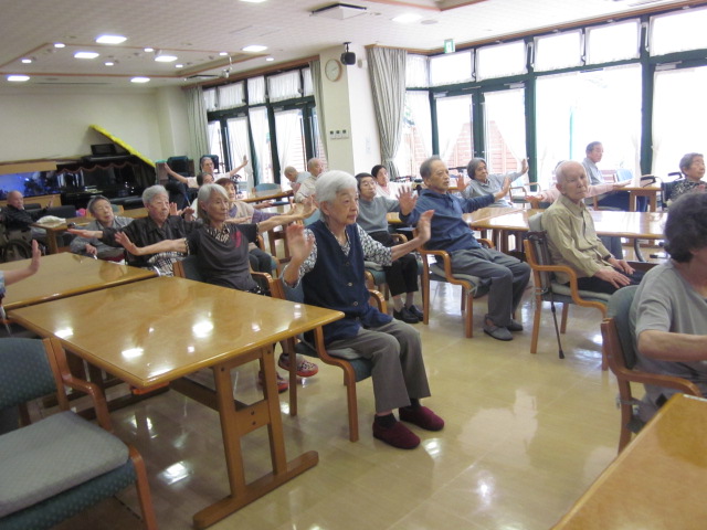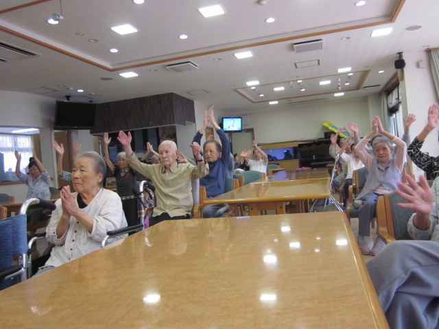 「ひざから下10回叩きます」「脛ですね!」等先生の掛け声に合わせて体操をおこないました。終わったあと ご入居者の皆様は 「今日は頑張ったね!」とお互いを褒めあっておられました。