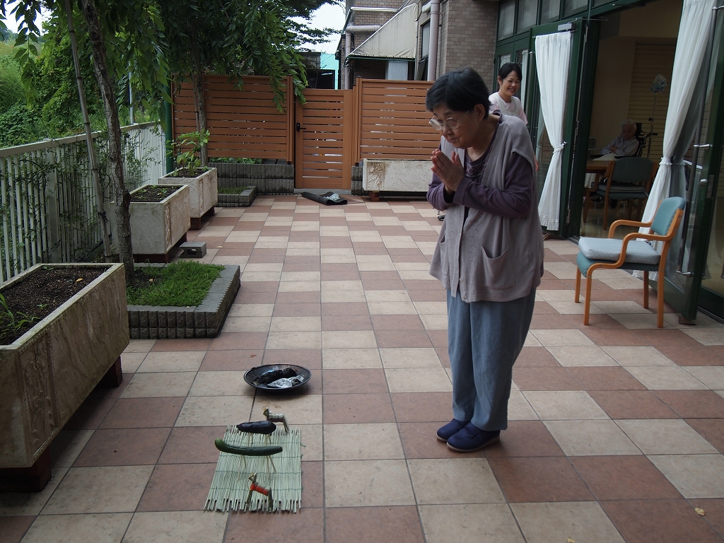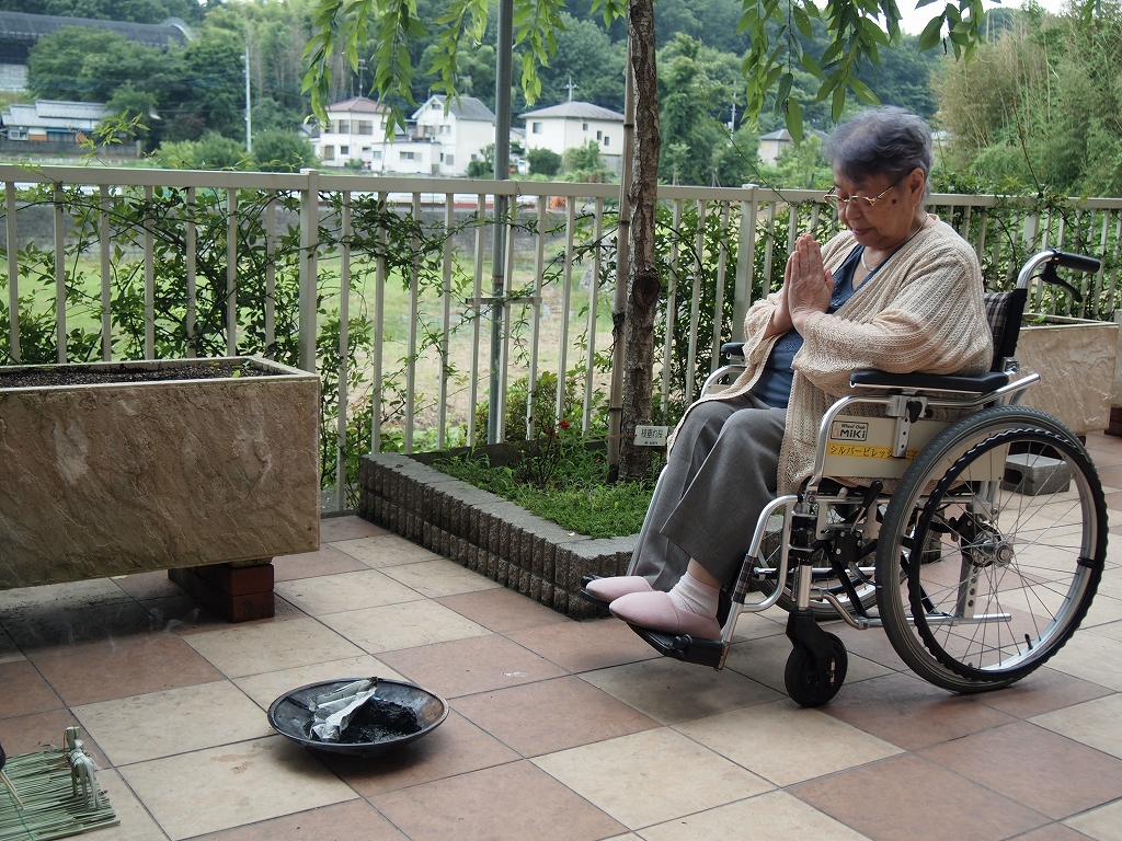 16日の送り火では 多勢のご入居者が、テラスに出られ オガラに火が付くと 皆様手を合わせ 静かにご先祖様をお送りしていました。ご先祖様を大切に思う気持ちが伝わり、良き日本の文化を感じました。