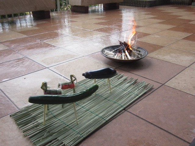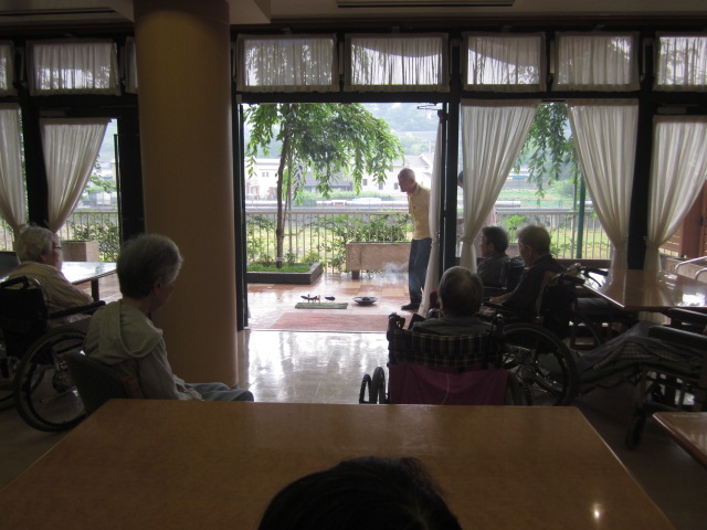 お盆の迎え火と送り火を行いました。13日の迎え火は あいにくの雨模様でしたが、ご入居者の皆様は室内からテラスで焚く迎え火を見てご先祖様をお迎えしました。