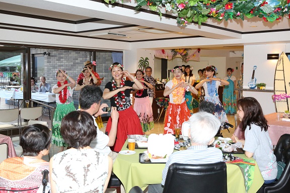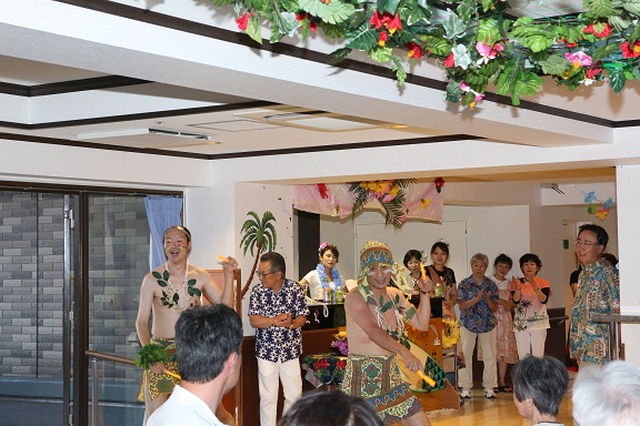 写真は、左から、斉藤(敦)さん、長谷川さん(両名とも介護部)が勇壮な踊りを披露しました。