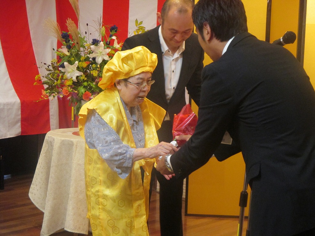午前の部はご長寿の式典。米寿・卒寿・101歳と7名の方が