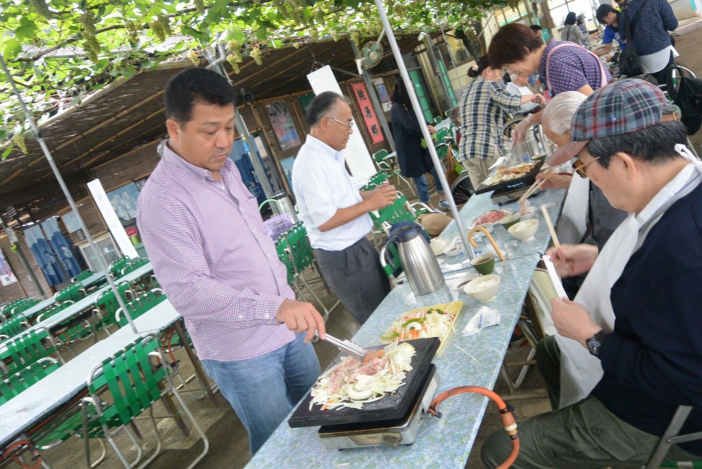 その後はぶどうの下でバーベキュー。