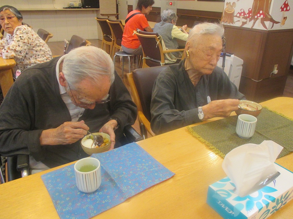 今日の茶話会では、あんみつを召し上がって頂きました。
