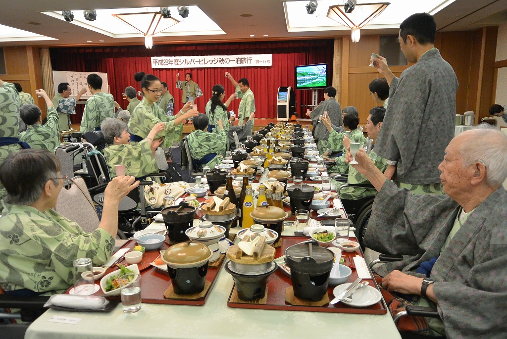 宿泊先「聚楽」での宴会や温泉を楽しみました♪