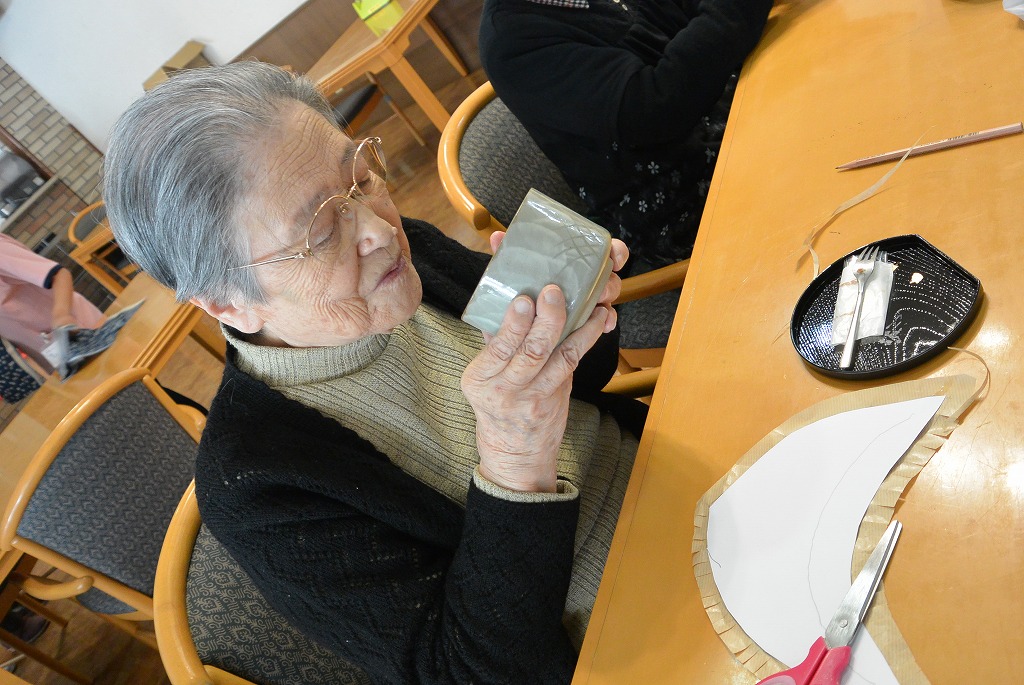 午後のレクリエーションは茶話会で、美味しい茶菓子と抹茶を召し上がられました♪