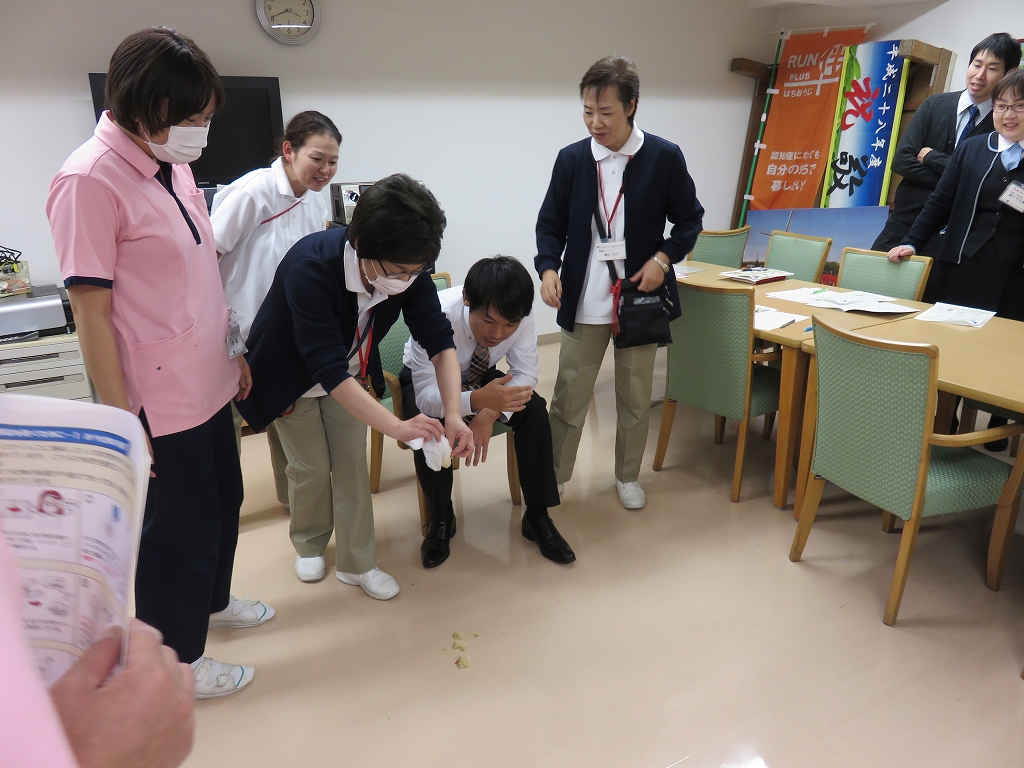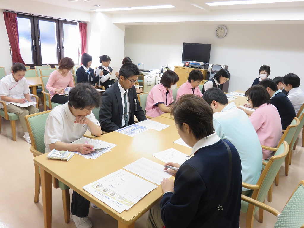 必要ですので、介護、看護のみならず、事務職員も一緒に勉強しました。