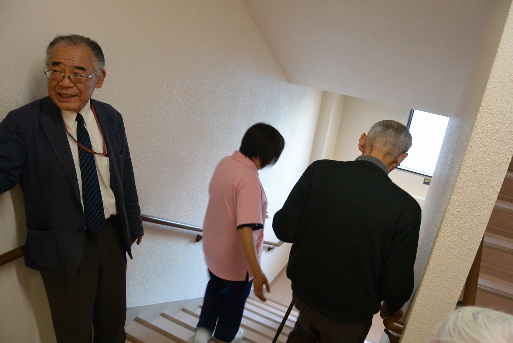 ご入居者の皆様も、階段を使った避難などに参加していただきました!