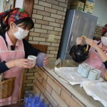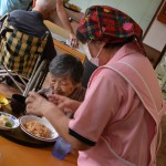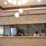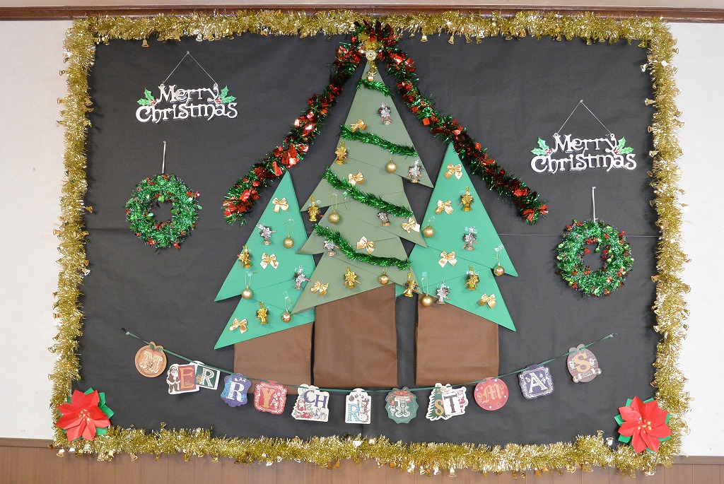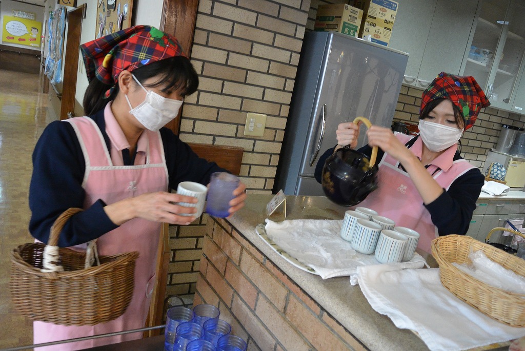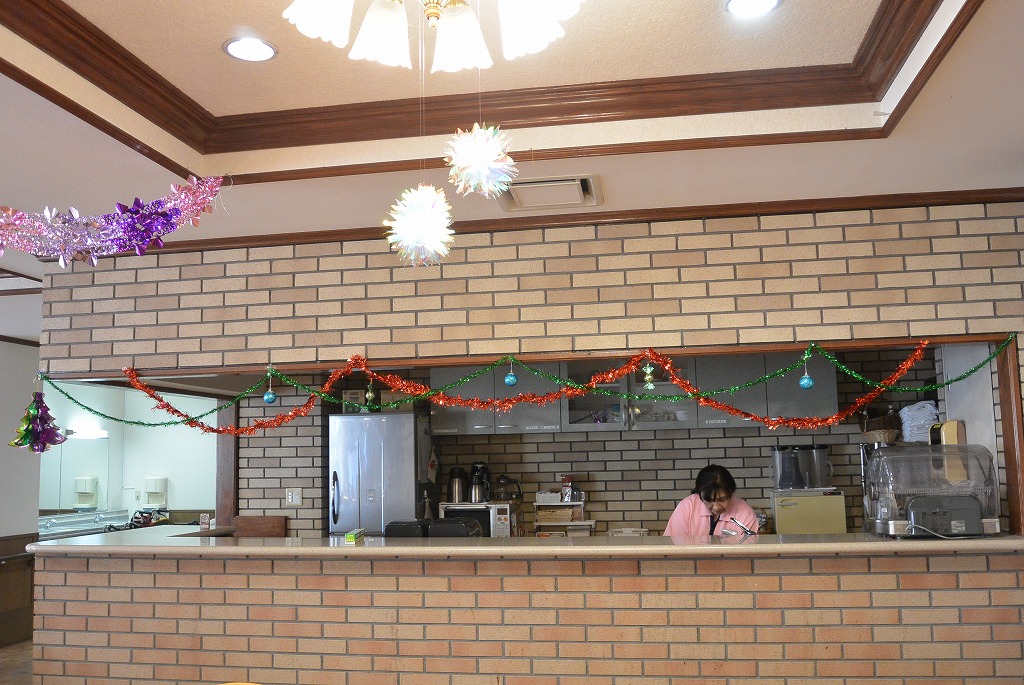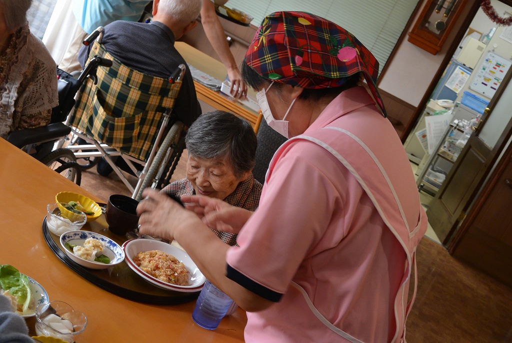 食事配膳時には、職員の三角巾もキュートなクリスマスバージョンで、