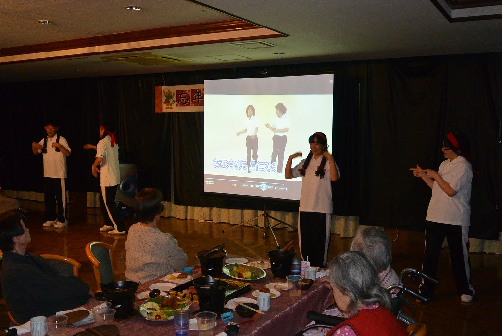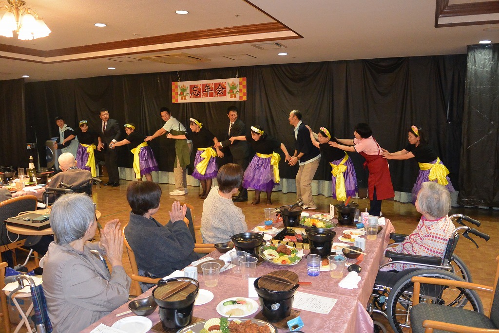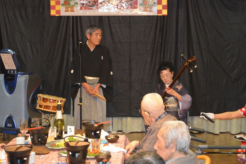 職員は時代劇、津軽三味線、当たり前看護体操、「抱きしめてtonight」の熱唱、
