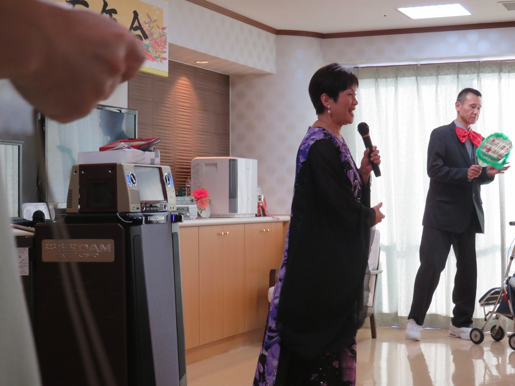 職員では、介護部の竹野さんが、こちらも恒例ですが、歌謡ショーを行いました。