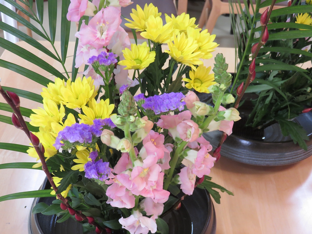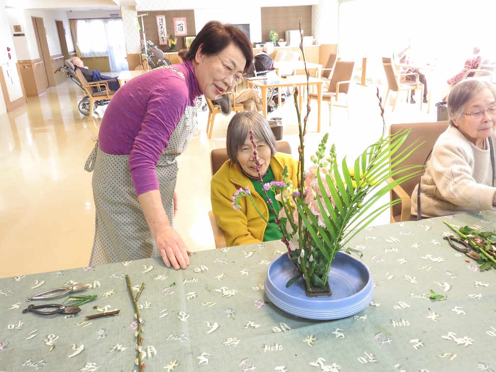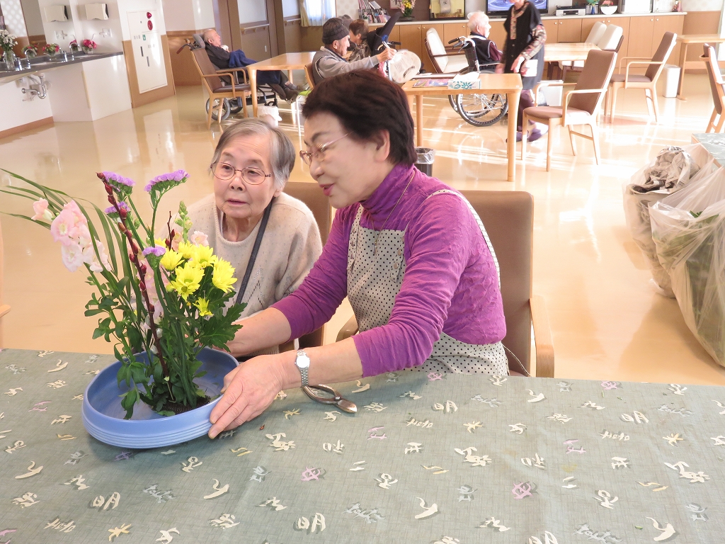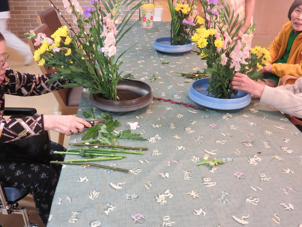 生け花の長沢先生のもと、ご入居者の方も楽しく活けておりました。