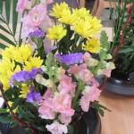 今回のお花は赤芽柳、金魚草、スプレー菊、スターチス、アレカヤシ です。