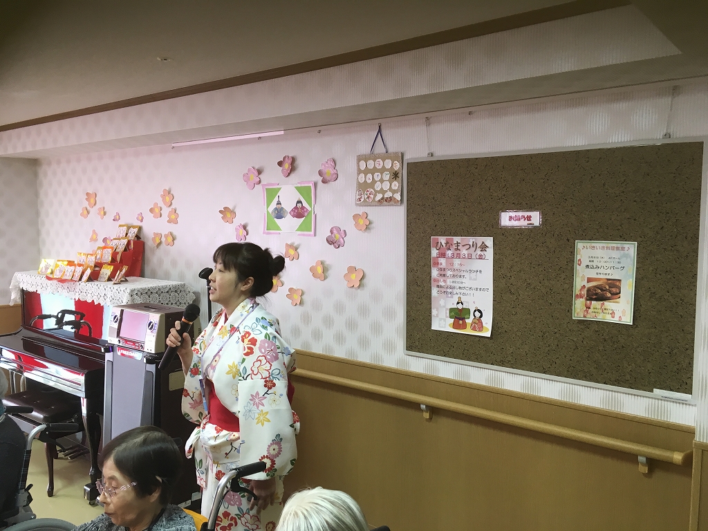 昼食から、「ひな祭り会」の第1弾、ひな祭りメニューでお食事です。