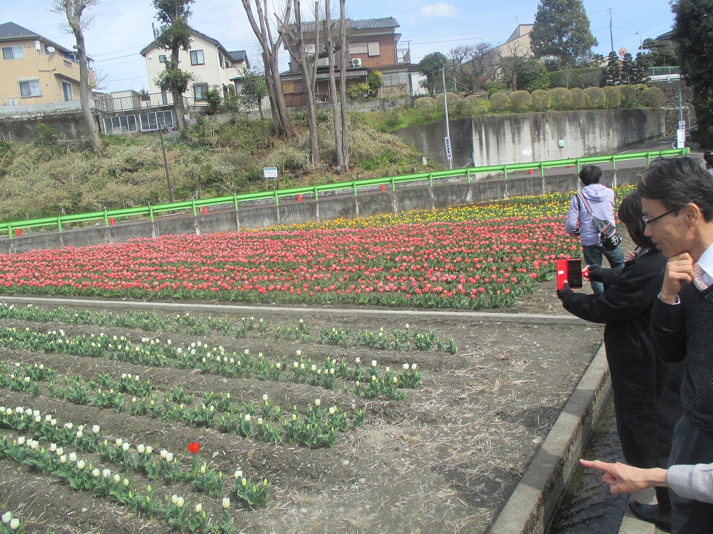 その後、チューリップ祭り会場の羽村市根がらみ前水田へ。