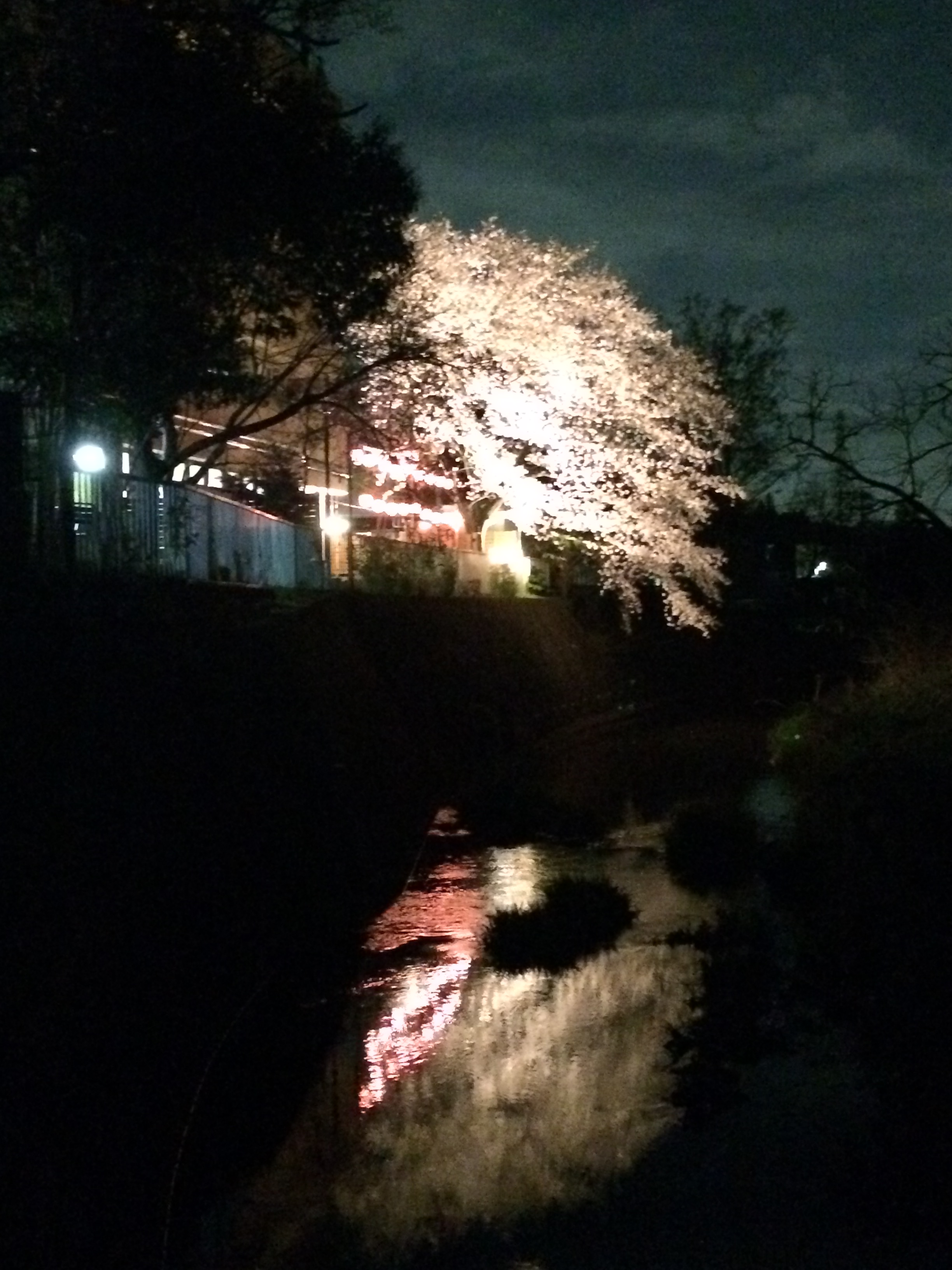 染井吉野はライトアップされ、川面に映る姿は和服のように優美で