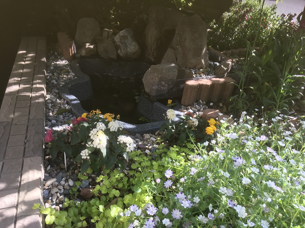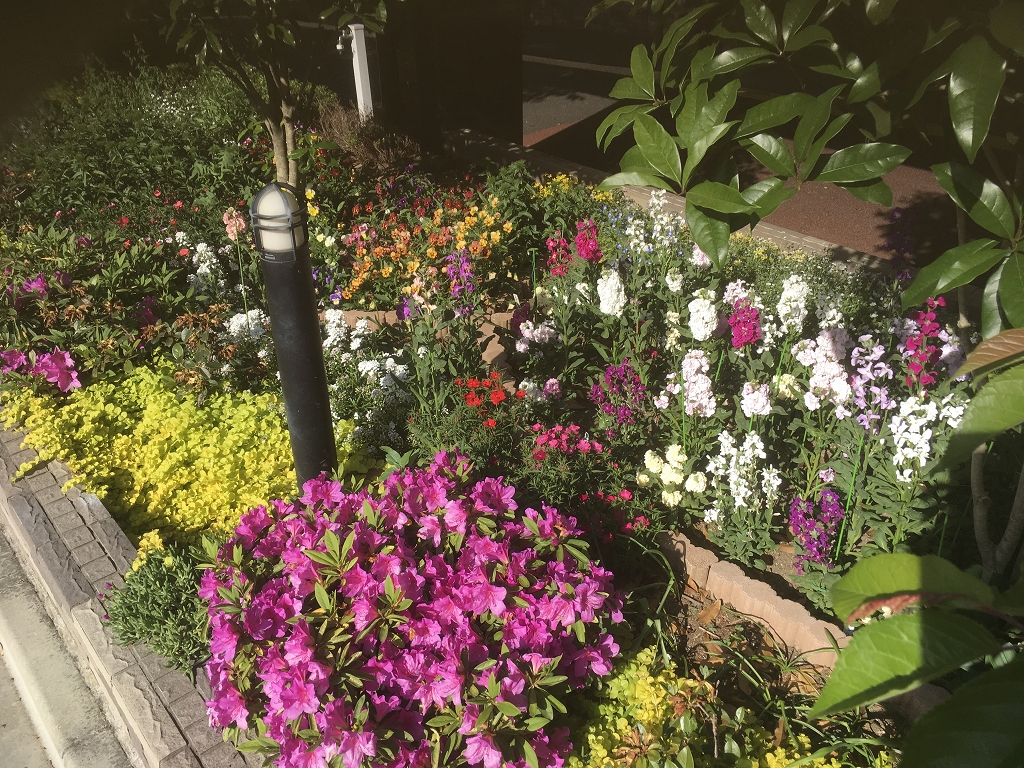 八王子施設の花壇は、まさに「イングリッシュガーデン」に