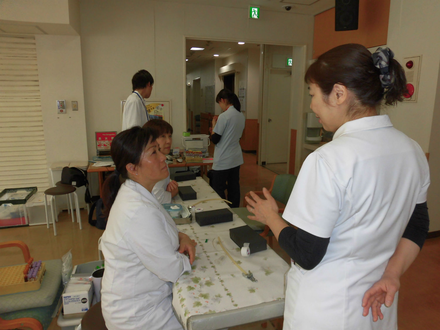 ご入居者の健康診断が行われ、体重測定、心電図、採血などの