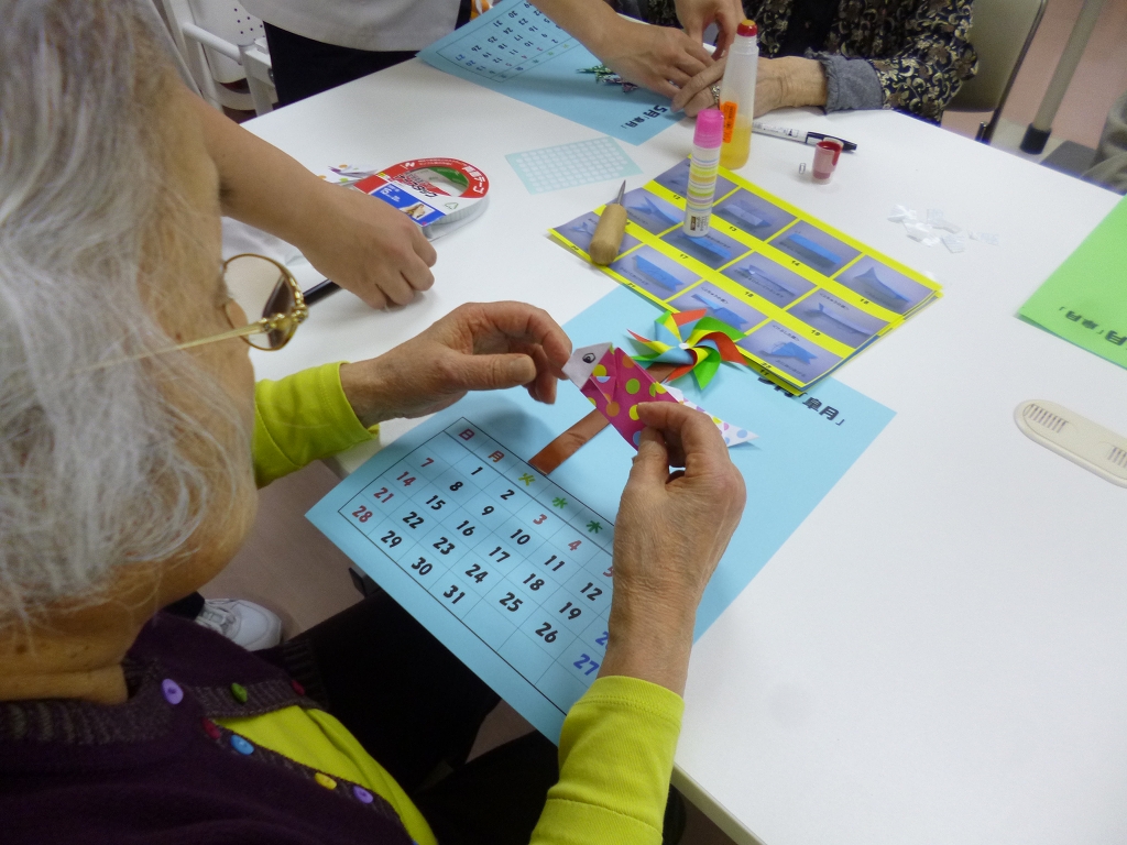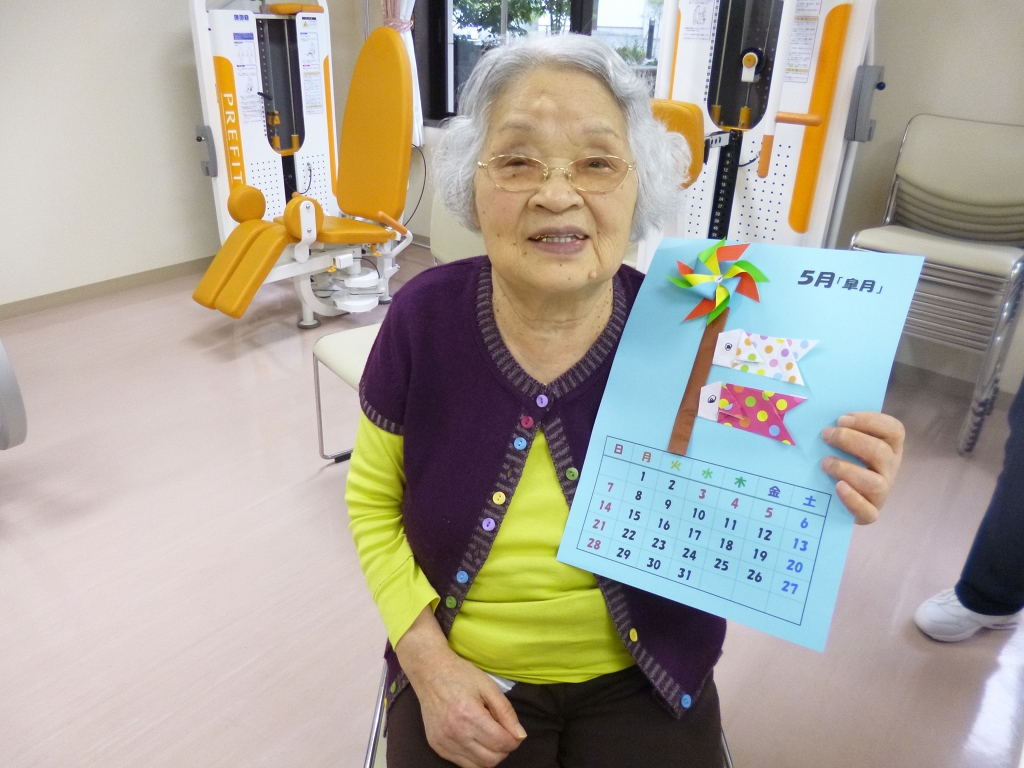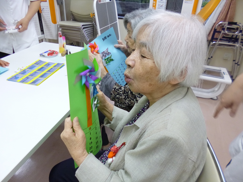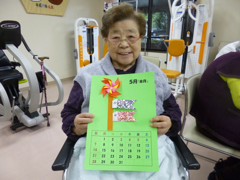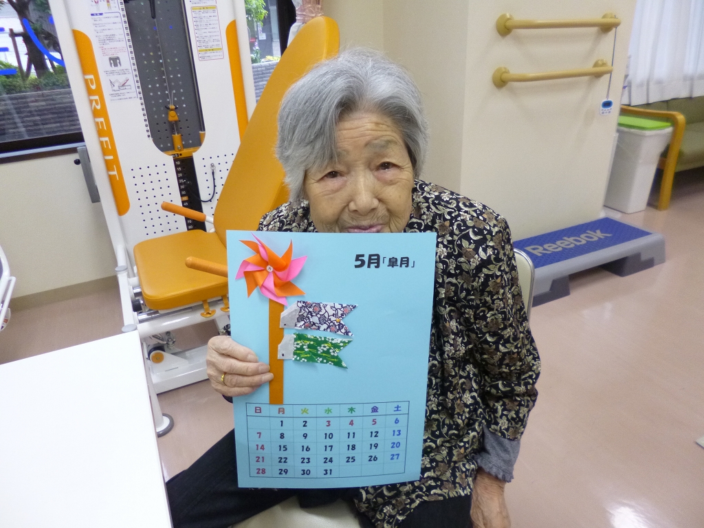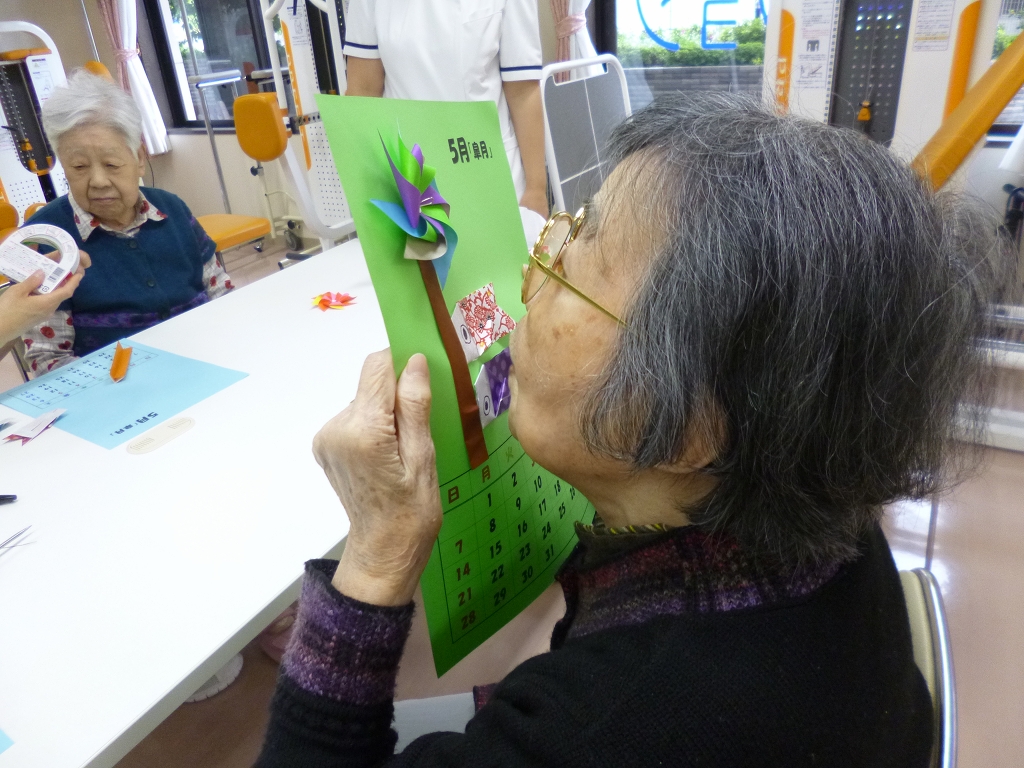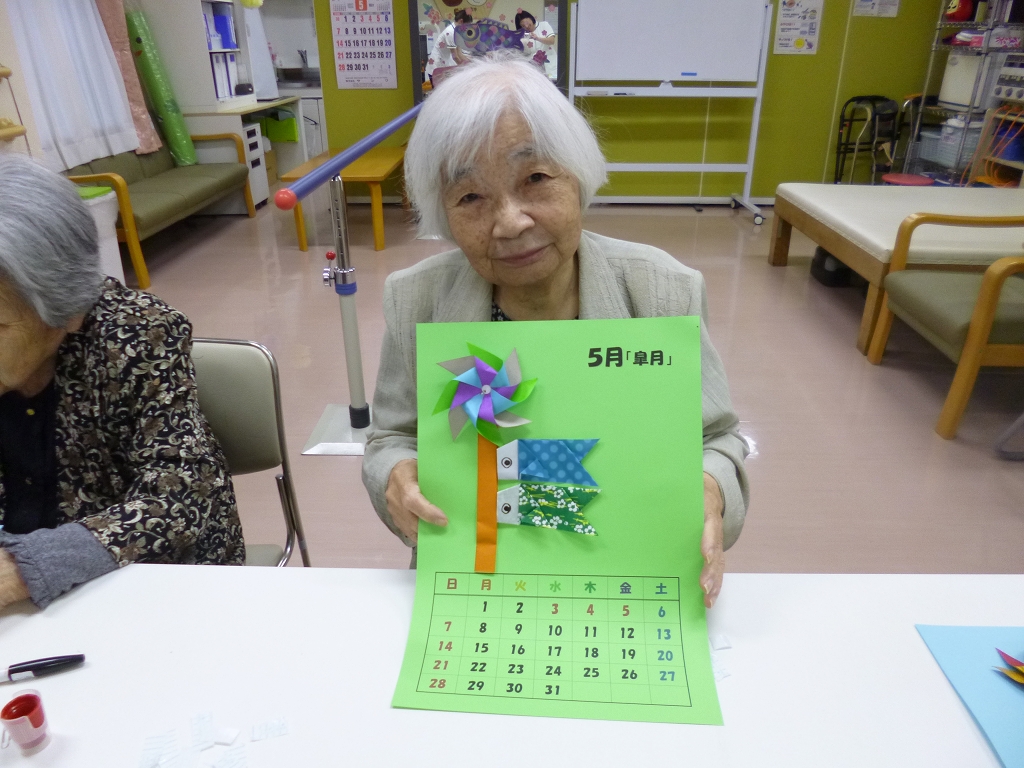 鯉のぼりと風車を折り紙で折り、カレンダー制作を行いました♪