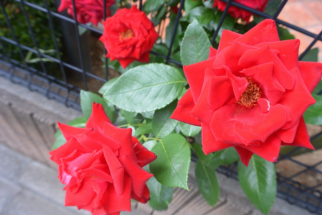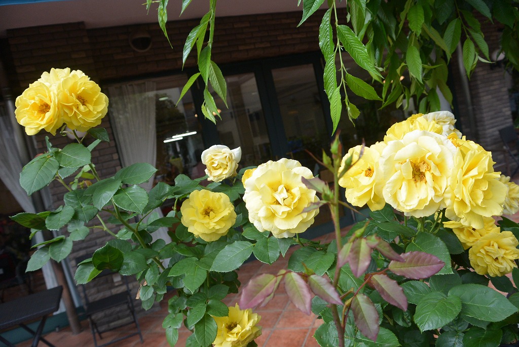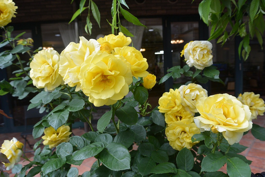 施設のテラスやエントランスに、今年も見事なバラが咲きました。
