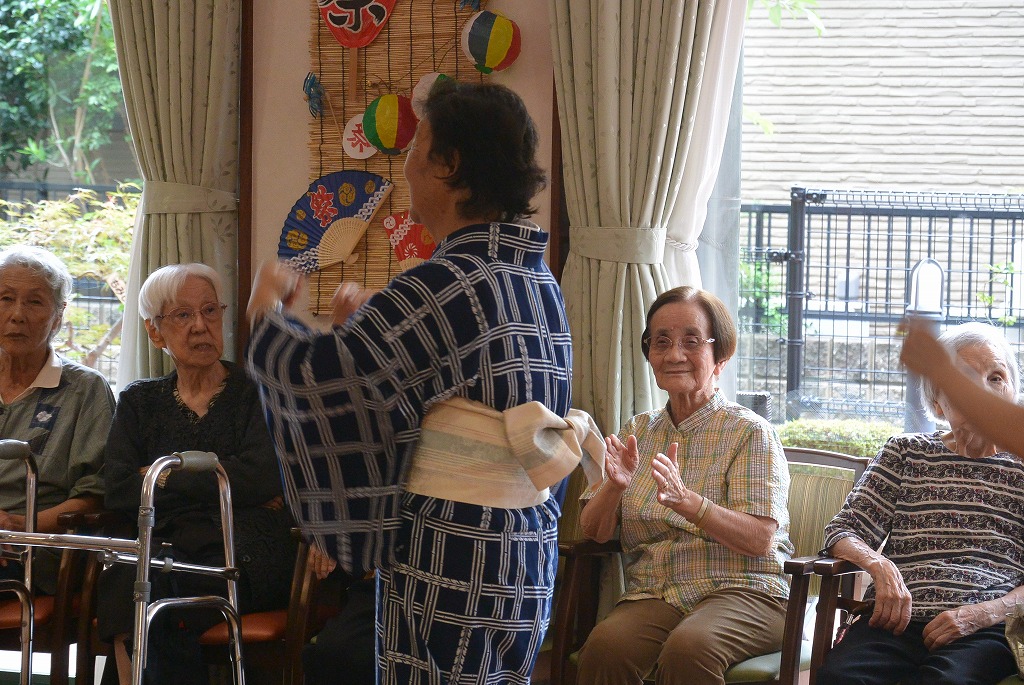 8月3日の一大イベント『納涼祭』に向けて皆様と盆踊りの練習を致しました。