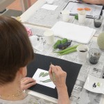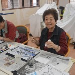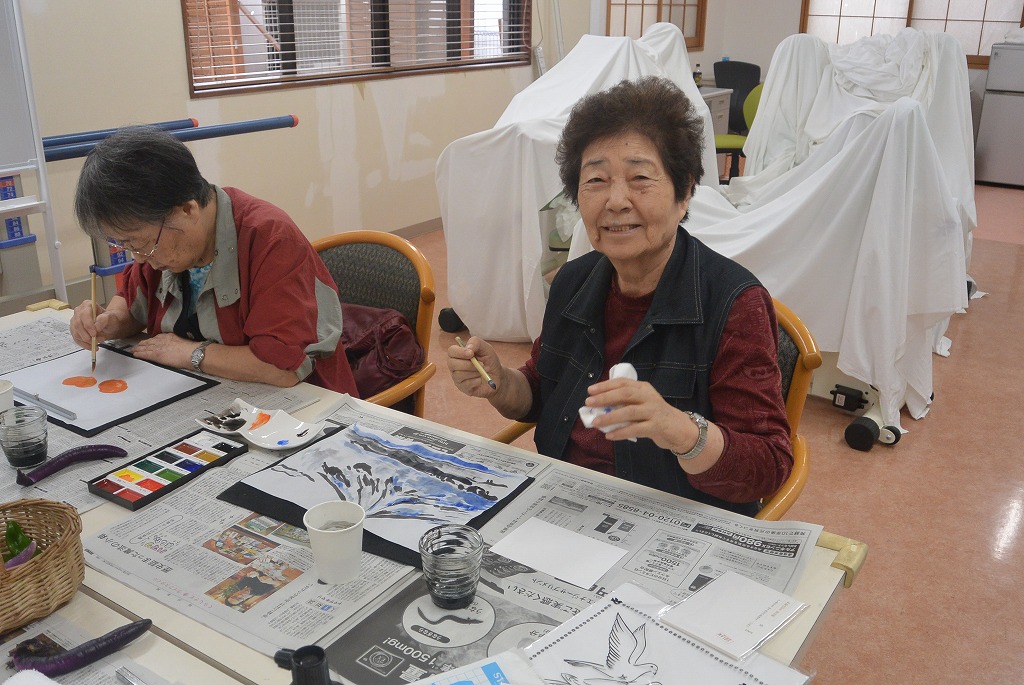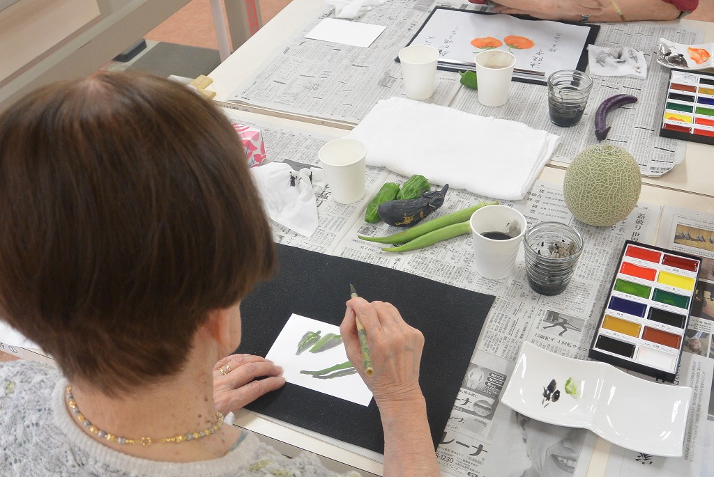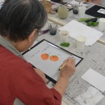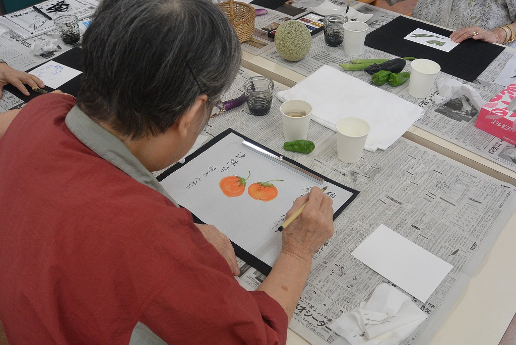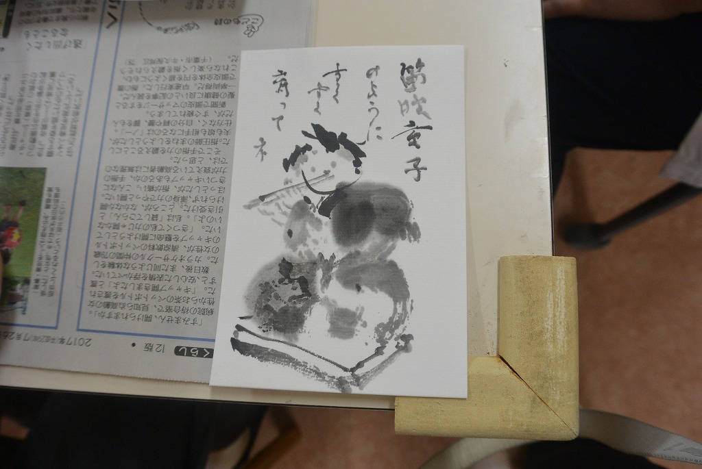 墨と顔彩を使い、ハガキにお好きな絵を描いて頂きました☆