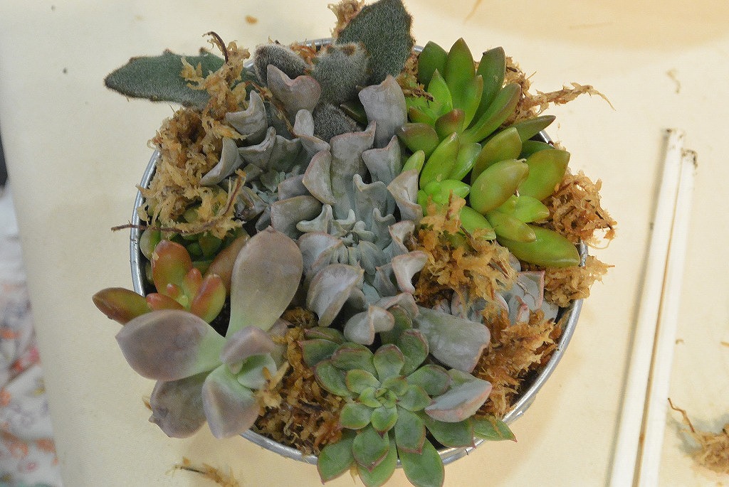 多肉植物のアレンジメントにわかれて