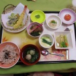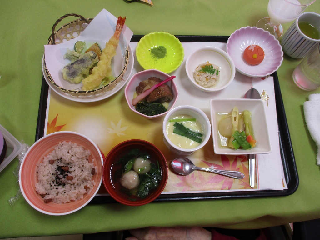 昼食には、お赤飯と揚げたての海老天ぷらなど皆様、