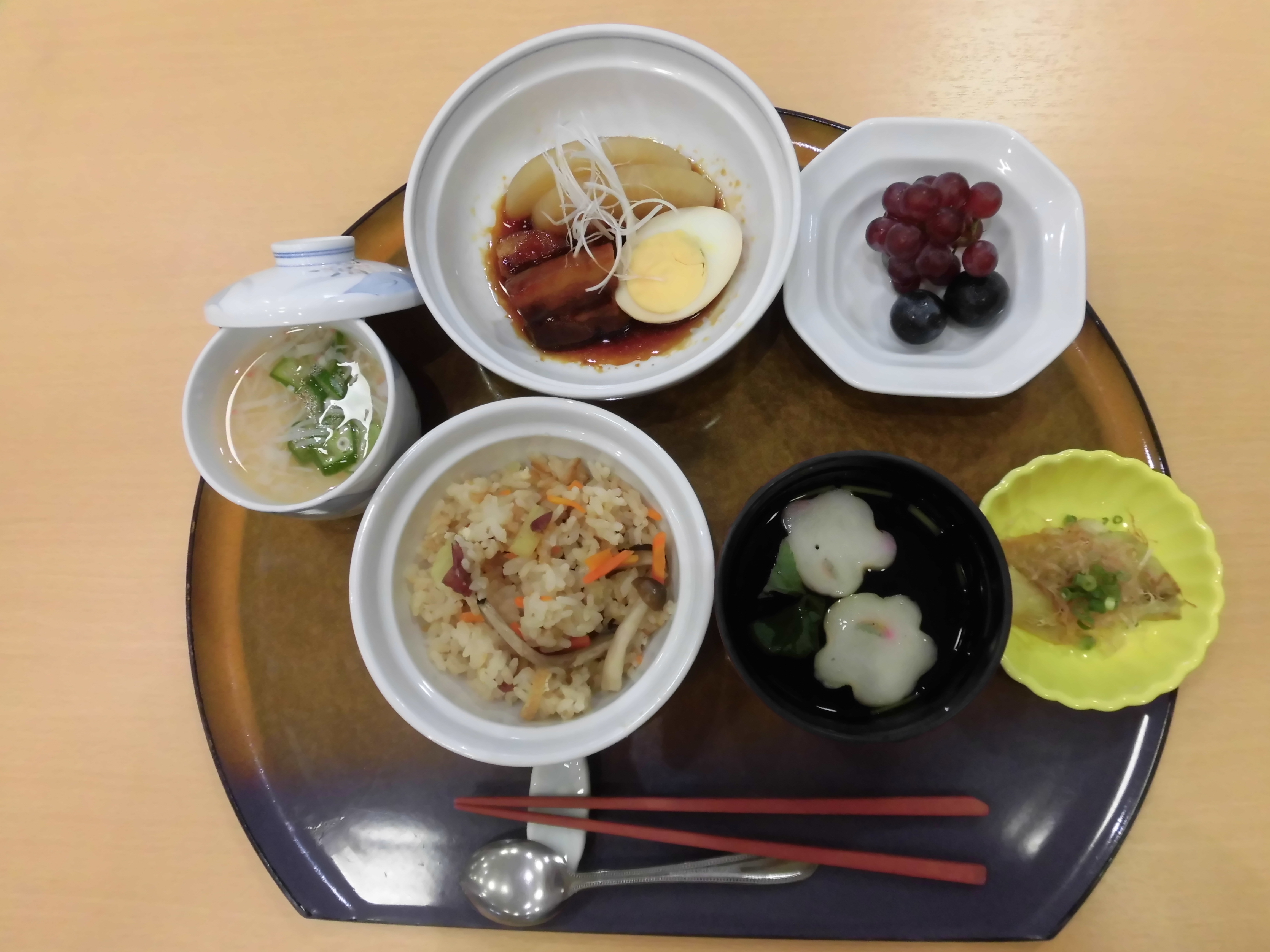『豚の角煮』『あんかけ茶碗蒸し』『ぶどう』を召し上がりました。