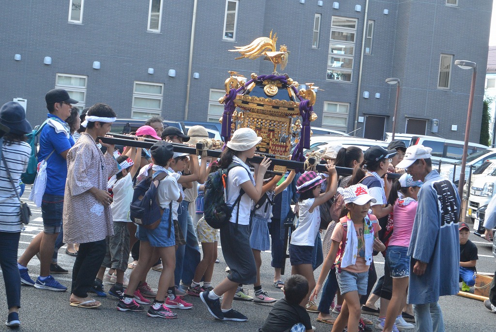 本日は、近所の子ども達が神輿を担いで