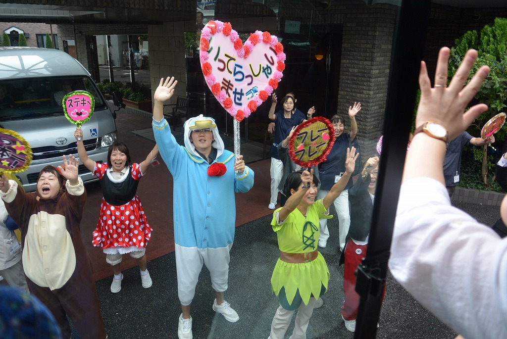 夢の国のキャラクターに扮した職員たちが見送る中、9:20頃施設を出発。