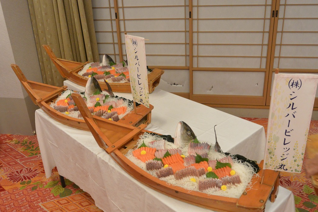 豪華な宴会料理と美味しいお酒、豪華な船盛りも!