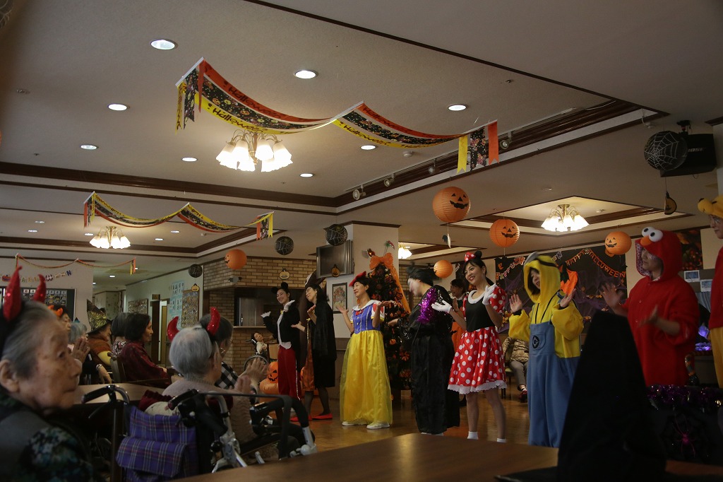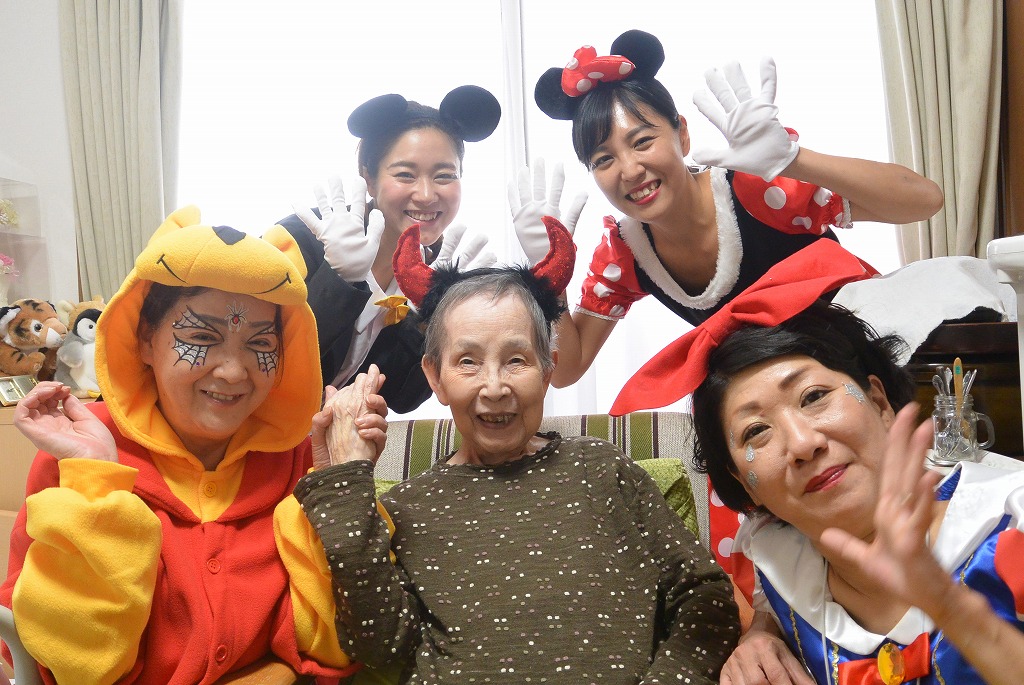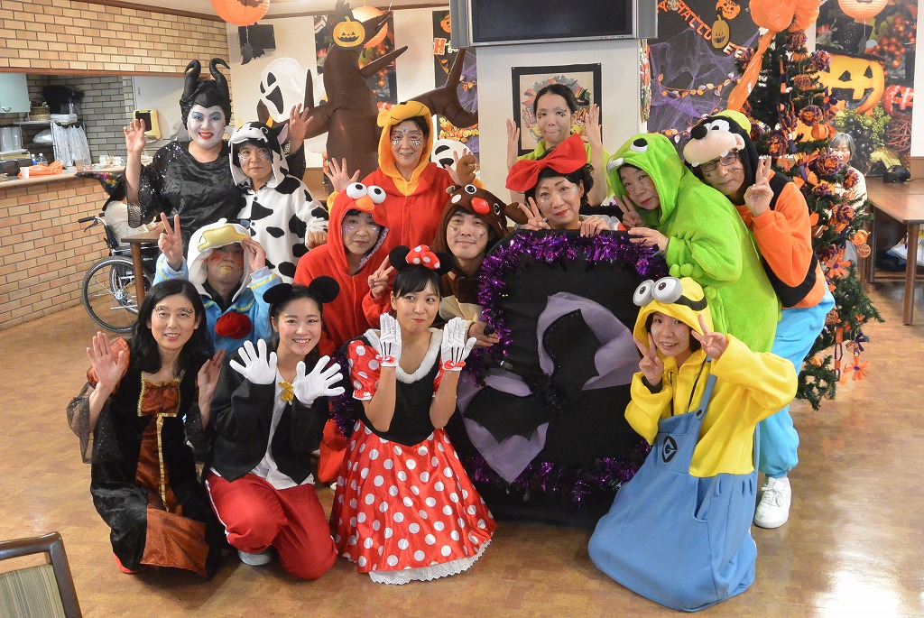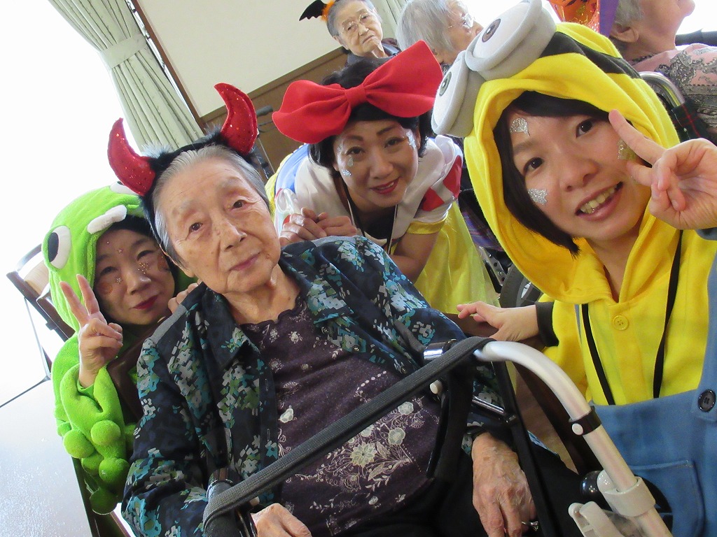 ご入居者も、職員も一緒に仮装をして楽しまれました(*^_^*)
