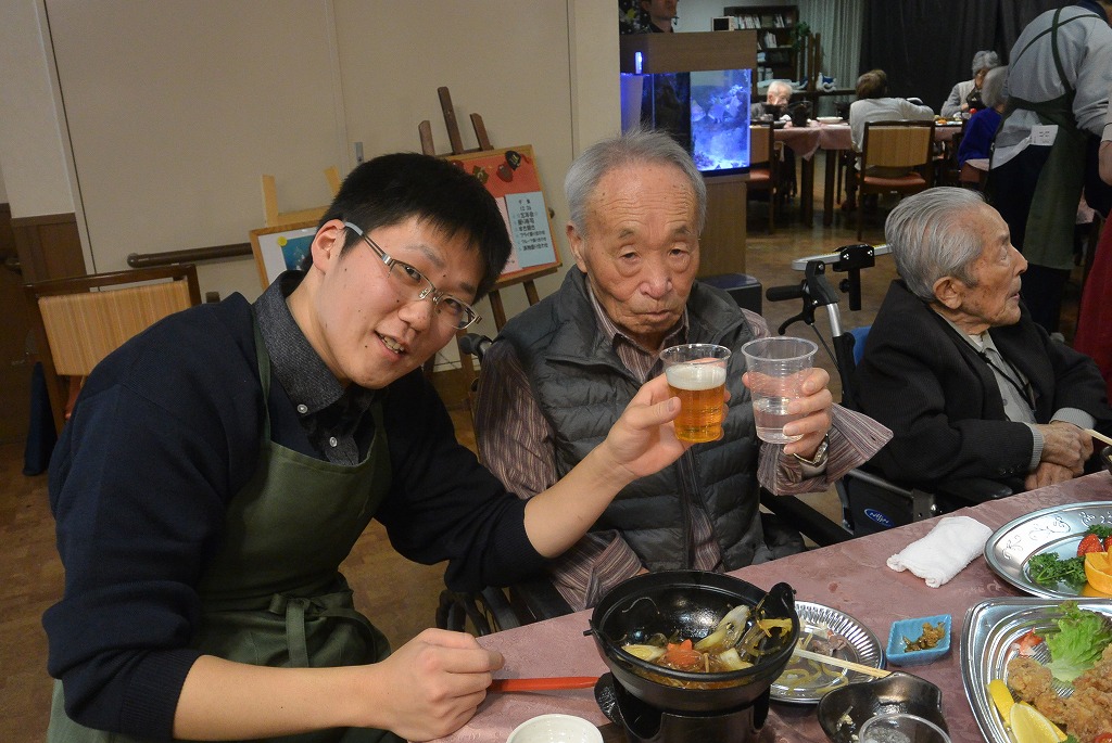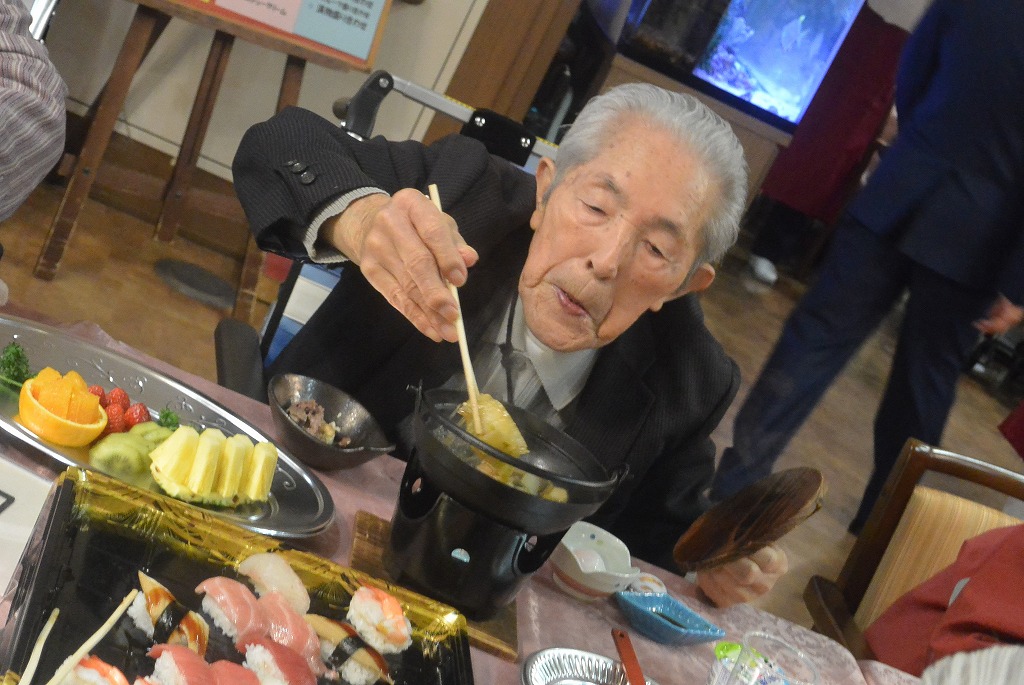 看護部からは『二人羽織』(食べるだけでなく…お化粧もしました☆)