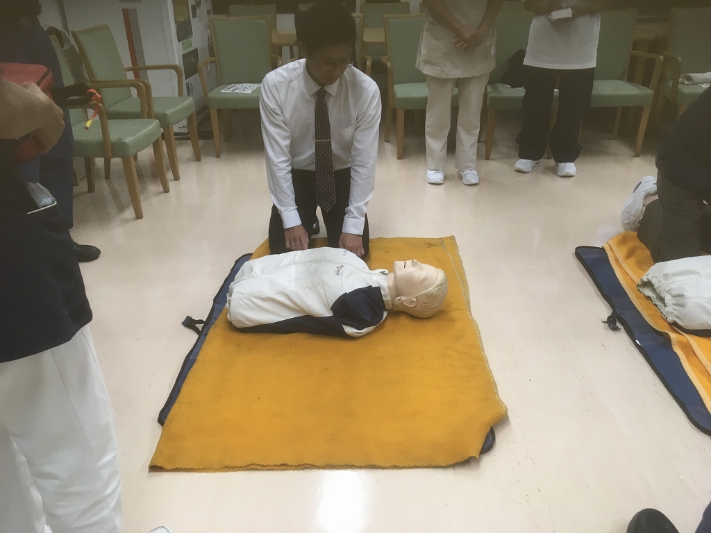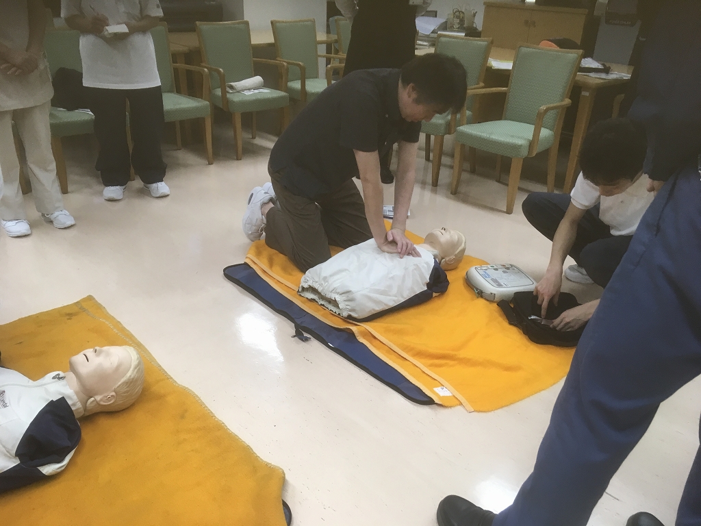 ご入居者の方の支援をしている私たちにとって、人命救助の訓練は必須でございます。