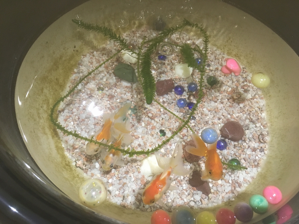 今年の夏より、1階ホールにて、住んでいます(?)金魚さんたち、