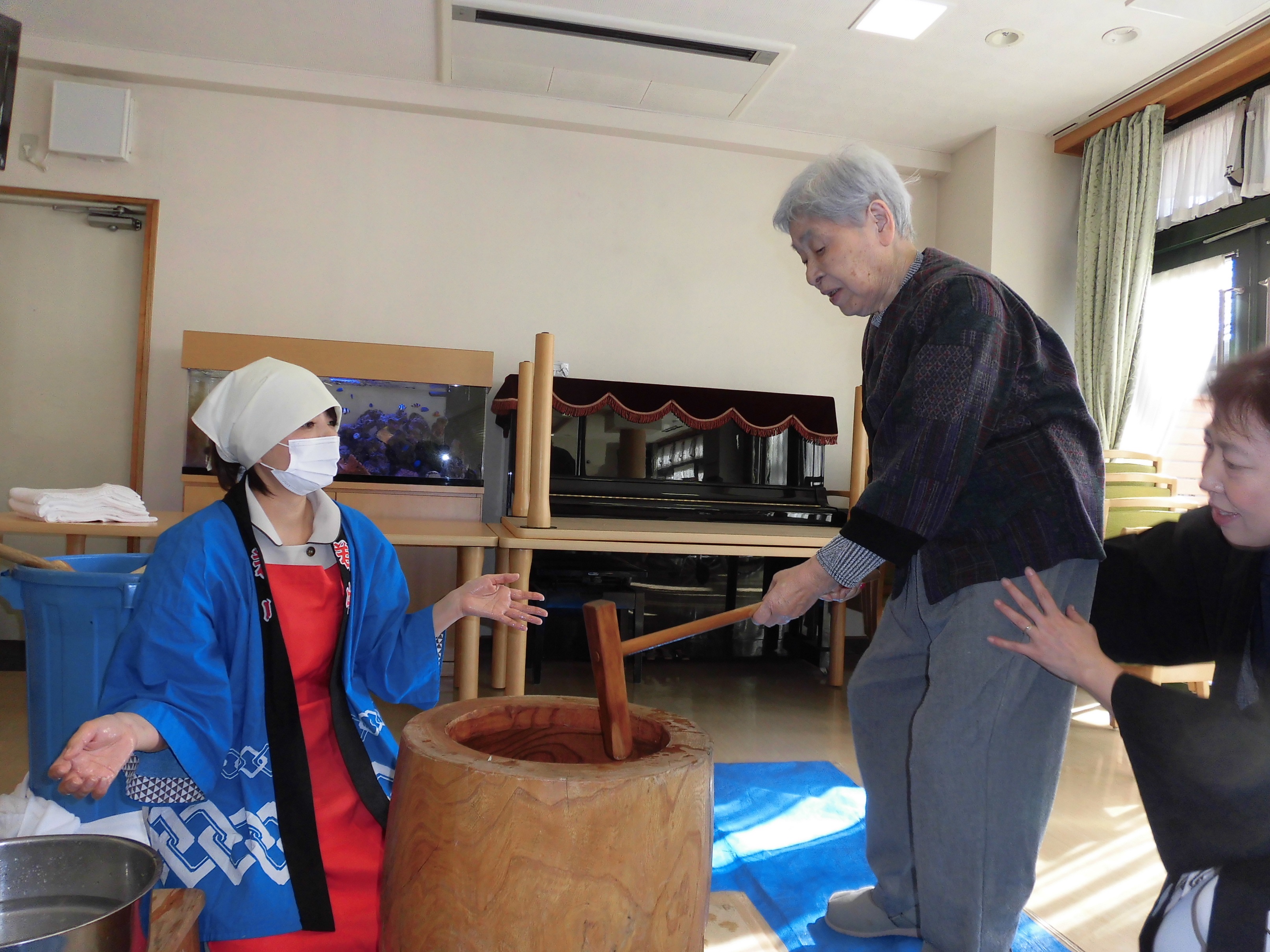 お餅をつく時には皆で掛け声や手拍子をして頂き、