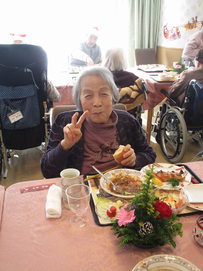 午前中は、クリスマスソングが流れる中、ご入居者の方にはゆっくりと