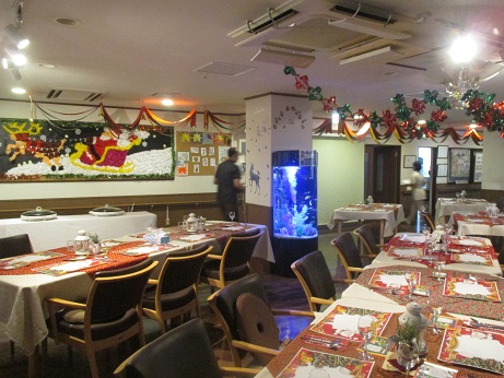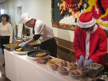 フレンチトーストの実演、ピアノ生演奏の中で、スペシャルランチからのスタートです♪