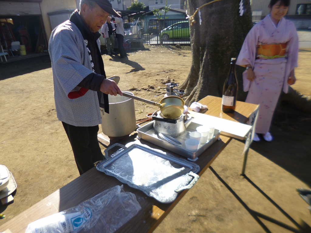 皆様、思い思いにお参りし、甘酒、みかんを頂き召しあがって