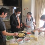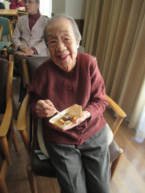 たこ焼き作りの不慣れさを見兼ねた青木施設長が最後まで!?