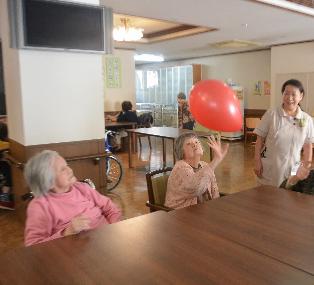 本日は運動レクリエーションで風船バレーを行ないました(*^_^*)