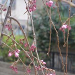 写真は玄関前の桜と、テラスのしだれ桜です。
