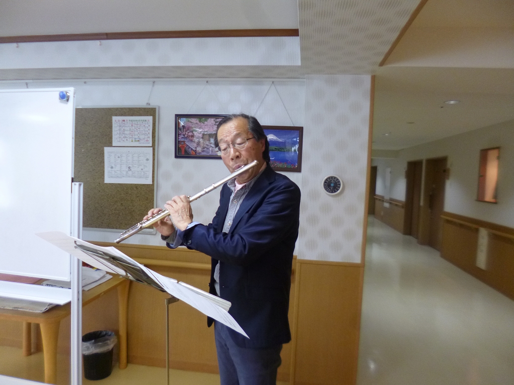 今回は体操や歌に加え、フルートで