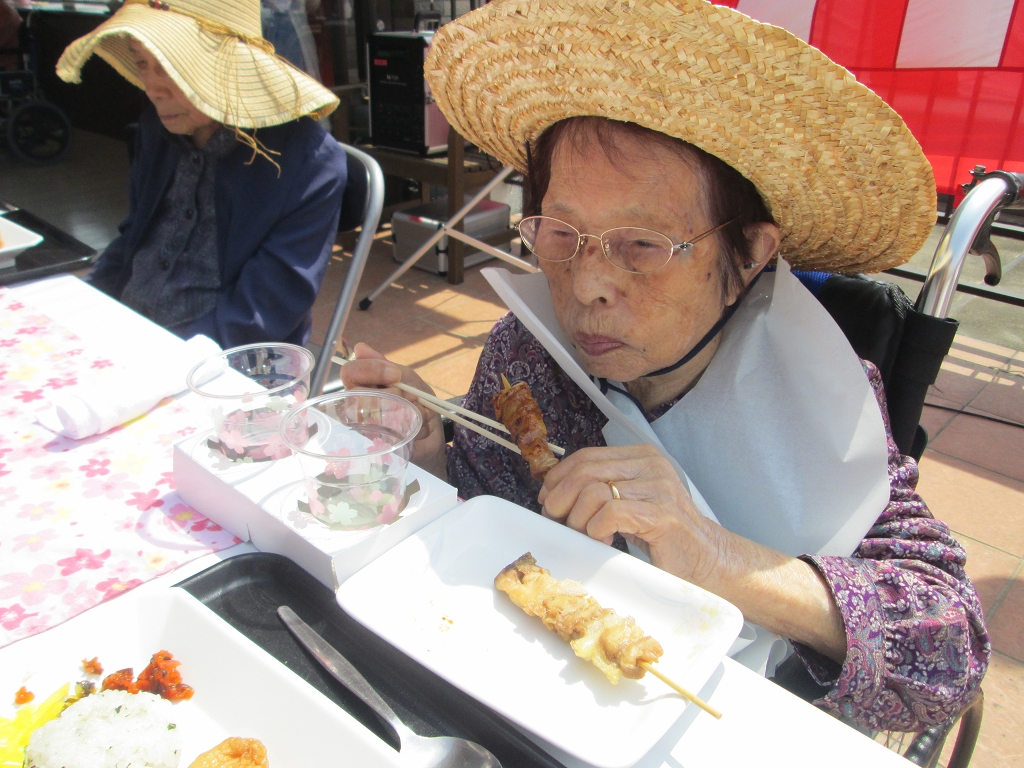 屋台を出して、焼きそば、焼き鳥、あら汁、いなり寿司、